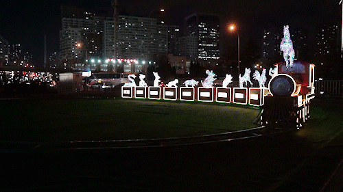 ??12月27日傍晚,在沙河口区解放广场南侧路街夹角空地,一列红底儿暖光的“时光小火车”搭载着五彩斑斓的十二生肖造型,沿轨道缓缓前行,动静结合、光影交融,让城市夜色中多了一抹璀璨。
